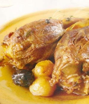 Tavanın içerisine 2 yemek kaşığı tereyağını koyup, eritiniz ve içerisine kuzu inciklerini atıp her tarafı pembeleşinceye kadar kızartın. Dışları kızarmış bir görüntü alan inciklerin içerisine 12 adet arpacık soğanı atıp, kavurmaya devam edin, yaklaşık 5 dakika kadar kavrulduktan sonra içerisine 1 yemek kaşığı salçayı, 10 dal taze kekiği. 15 adet kuru eriği atıp, üzerine 1 çay kaşığı tane karabiber ilave edin.
