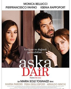 | SevdiÄŸi kadın tarafından terkedilen bir erkek ne hisseder? Artık aşık olmadığını keÅŸfettiÄŸinde ve aÅŸk hikayesini sonlandırmaya karar verdiÄŸinde ne olur? Tutkulu bir erkeÄŸin bakış açısından bir aÅŸk. YönetmenliÄŸini Maria Sole Tognazzi’in yaptığı filmin konusu ÅŸöyle: Kırklı yaÅŸlarda bir eczacı olan Roberto birkaç aydır birlikte olduÄŸu Sara’ya aşıktır. Sara bir gün Roberto’nun hayatından sessiz sedasız ayrılır. Bu kaçış Roberto’ya ağır gelecektir. Zamanla toparlanırken karşısına çıkan Alba ile aÅŸkı yaÅŸadığını zanneder ancak aslında aşık olmadığını anlar ve Alba’yı terkeder. Alba’da Roberto’nun yaÅŸadığı aÅŸk acısını yaÅŸamaya baÅŸlar. 11 Aralık’da vizyona girecek 2008 İtalyan yapımı “AÅŸka Dair’ in baÅŸrollerini Pierfrancesco Favino(Roberto) , Monica Bellucci(Alba), Kseniya Rappoport(Sara) paylaşıyor. |