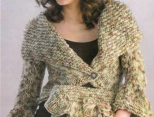 Yılın moda renklerinden son moda el işi hırka ve el çantası yapımı. Hırkanın kollarındaki volanlar çantadaki volanlarla bütünlük oluşturuyor. 2011 kış trendi volanları hırkalarda taşıyor
