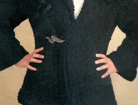 Kollar: 24 ilmek 8 sıra pirinç ördükten sonra 5.cm düz örün. Yanlardan 1 ilmek eksiltin, 2 sıra örün, her iki yandan 1 eksiltin. 30 cm de 2 ilmek arttırın, 5 cm örüp kolu kesin.