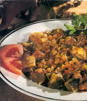 Patlıcanlı yeşil mercimek