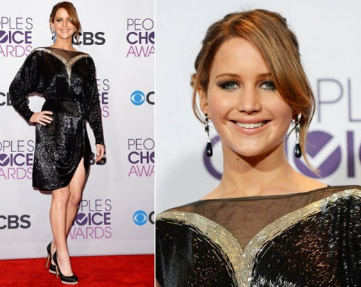 2013 People Choice Ödülleri Kazanan, Jennifer Lawrence Valentino Couture payetli kokteyl elbisesi ile parlıyordu.